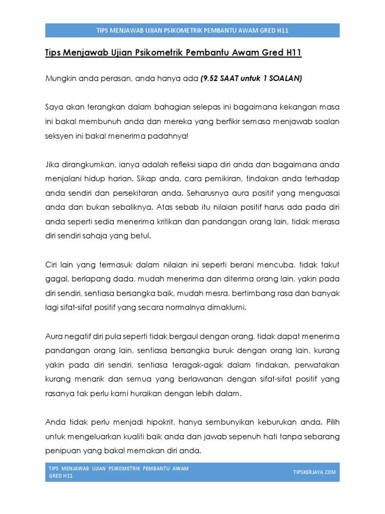 Soalan ujian psikometrik pembantu operasi gred n11 via carianmaklumatsemasa.com.